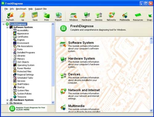| Информация | Предназначение Fresh Diagnose – анализ и тестирование системы. После сканирования программа выдаст полную информацию о периферийных устройствах, сети, программном обеспечении. Кроме этого, Fresh Diagnose может сравнить вашу систему с другими. |